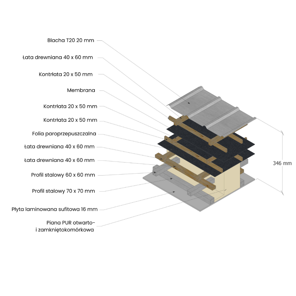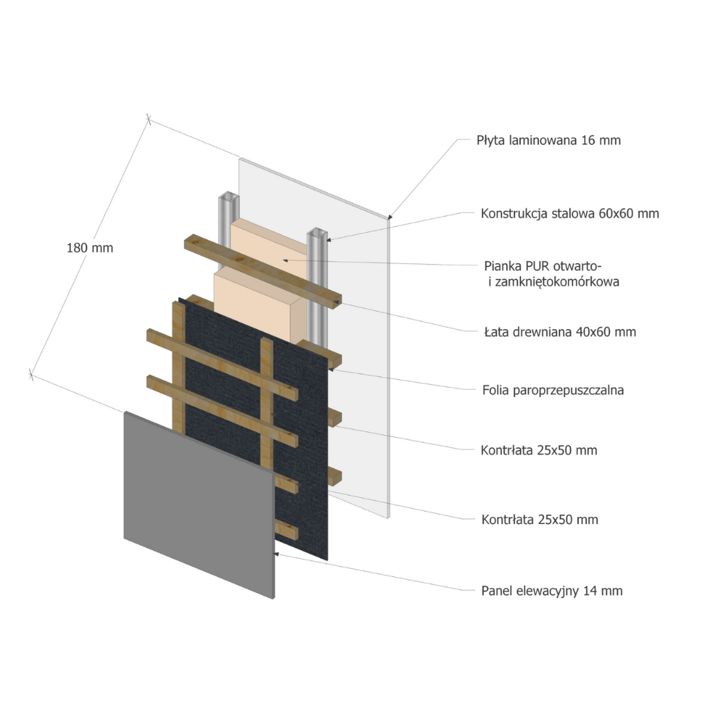 Níže představujeme průřezy stěn, střechy a podlah v mobilních domech a ekodomech a také ukazujeme video z testu vzduchotěsnosti. Protože stavíme domy na zakázku, můžeme konstrukční prvky (např. tloušťku vrstvy PUR pěny, tloušťku stěny) přizpůsobit vašim potřebám.