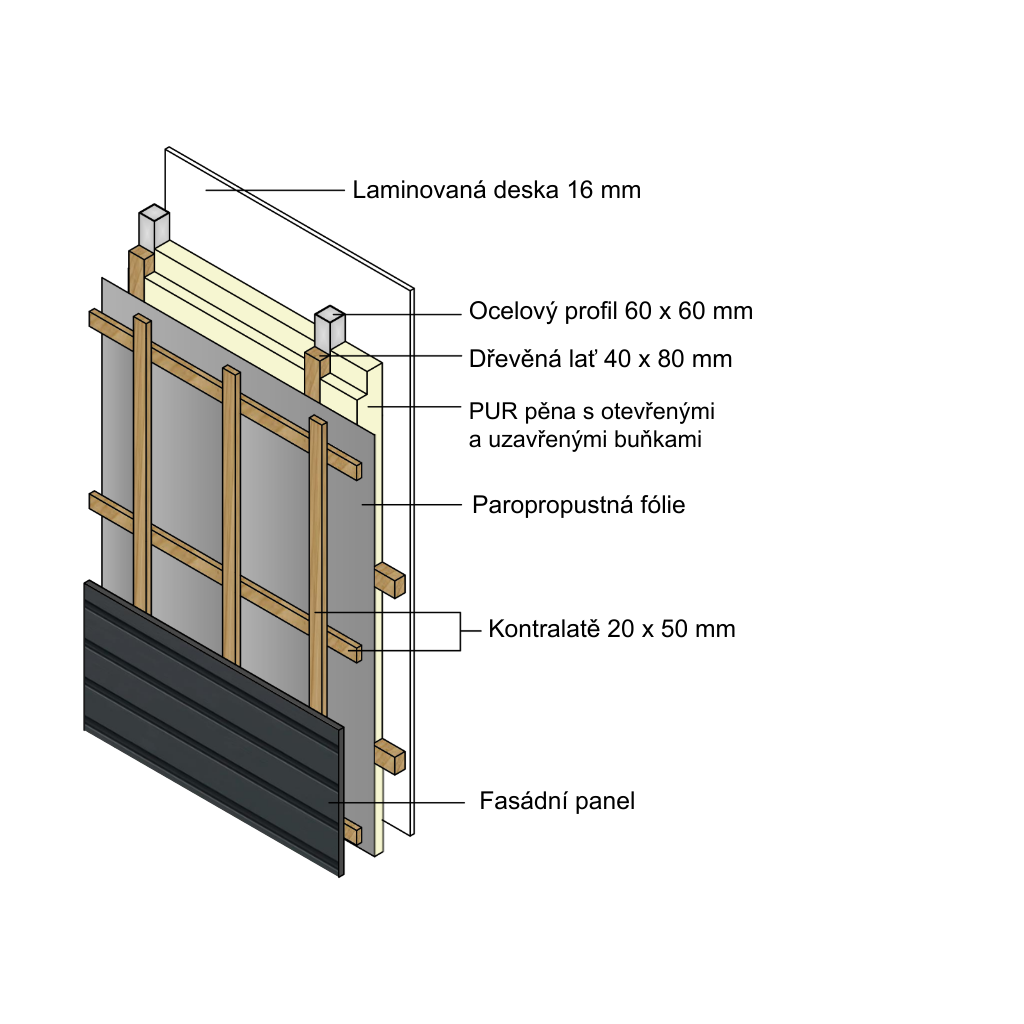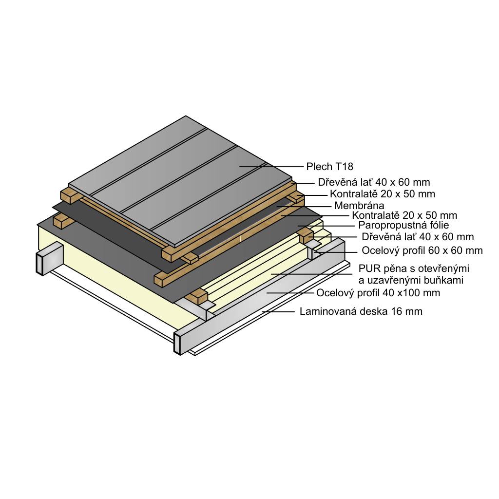 Níže představujeme průřezy stěn, střechy a podlah v mobilních domech a ekodomech a také ukazujeme video z testu vzduchotěsnosti. Protože stavíme domy na zakázku, můžeme konstrukční prvky (např. tloušťku vrstvy PUR pěny, tloušťku stěny) přizpůsobit vašim potřebám.