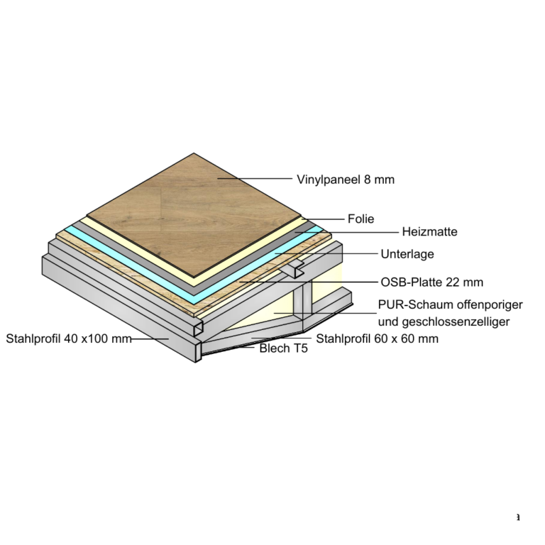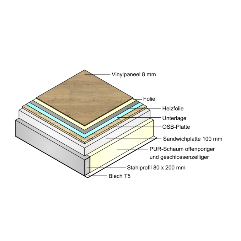 Im Folgenden zeigen wir Querschnitte der Wände, des Daches und der Böden in Mobil- und Ökohäusern und präsentieren außerdem ein Video des Dichtigkeitstests. Da wir Häuser nach Maß fertigen, können wir die Konstruktionselemente (z. B. Dicke der PUR-Schaumschicht, Wandstärke) an Ihre Bedürfnisse anpassen.